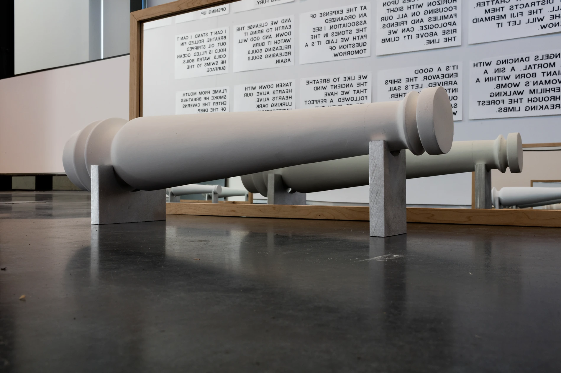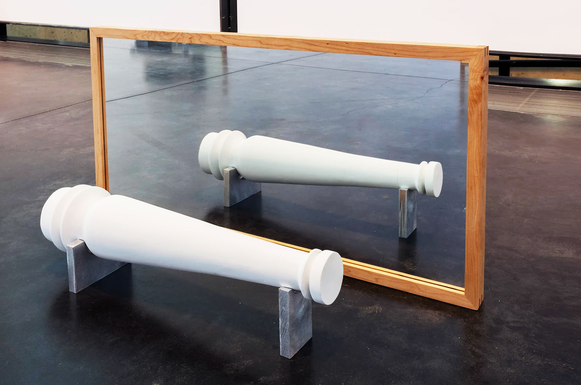 Plaster, aluminum, maple, glass
